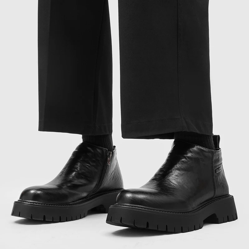 Locomotiva alta da uomo in pelle con suola spessa con cerniera britannica rialzata corta 2025 Nuovi stivali medi punk