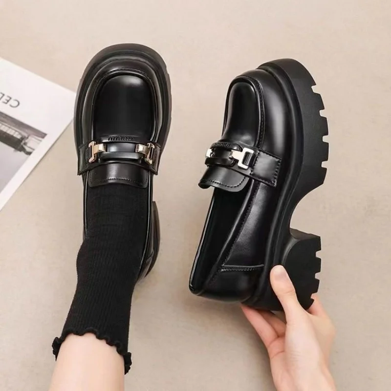 Plus Size 35-43 Mocassini in pelle PU nera Donna Stile britannico Slip On Scarpe con plateau Donna Suola spessa Scarpe uniformi scolastiche giapponesi