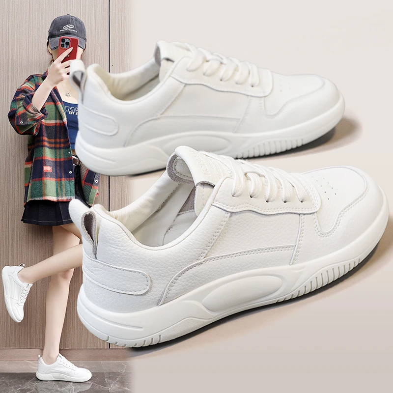Sneakers da donna in stile vintage, nuove sneakers bianche, sneakers da donna alla moda per studentesse, sneakers casual, scarpe da skateboard