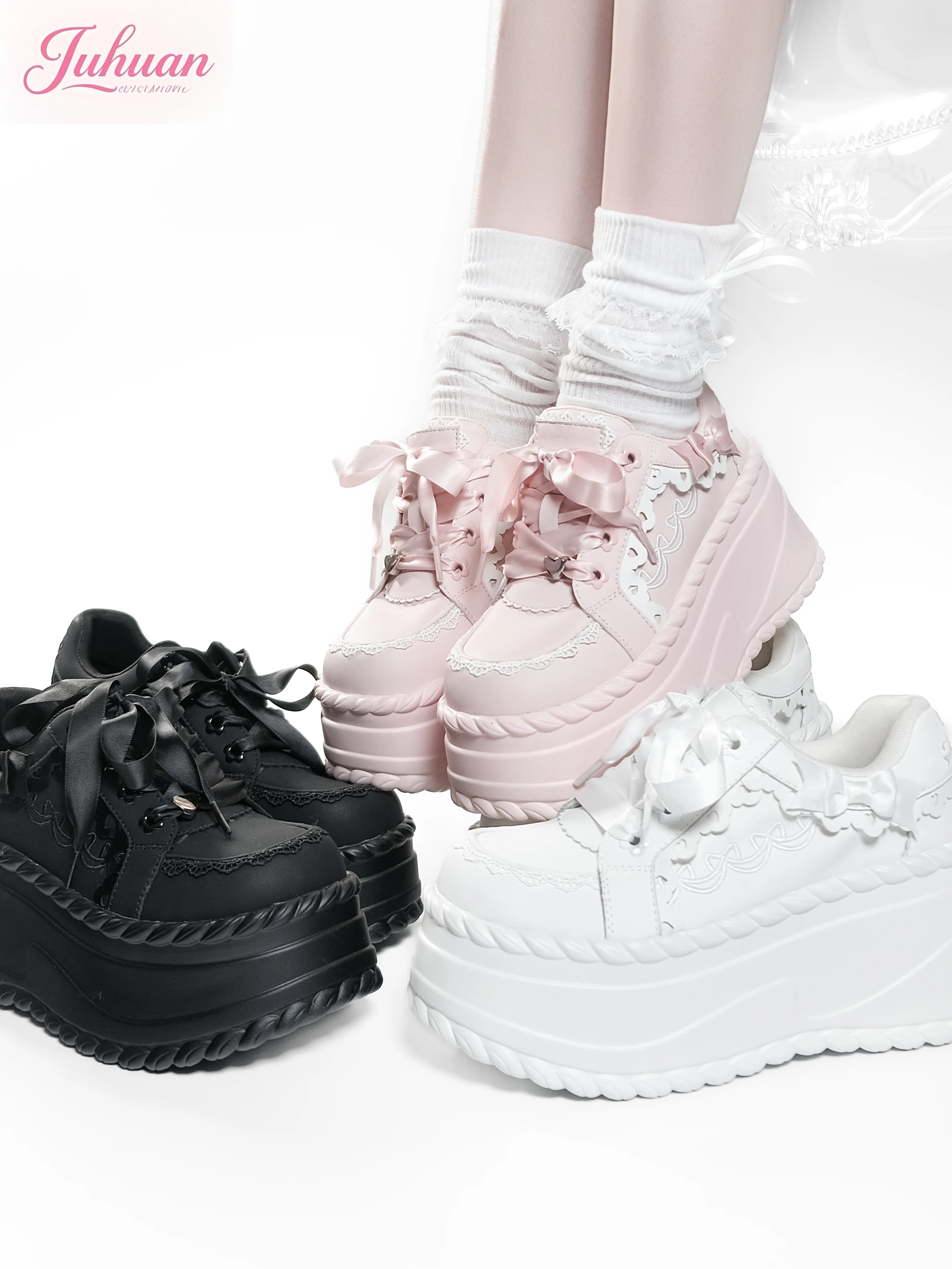 Scarpe singole da corsa grigie Gururu Original Lolita Girls Lace Lace Grigio Rosa Scarpe da ginnastica versatili con suola spessa