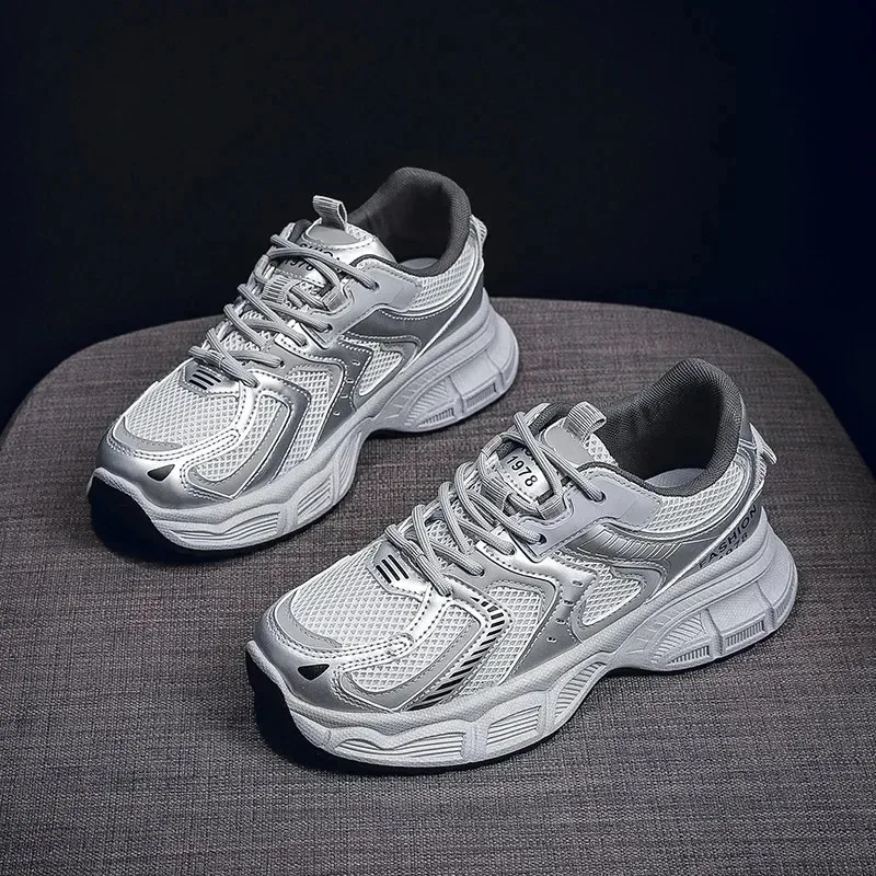 Scarpe da papà2025Nuove scarpe sportive da donna primavera e autunno con suola spessa cuscino d'aria assorbimento degli urti scarpe da donna casual dimagranti