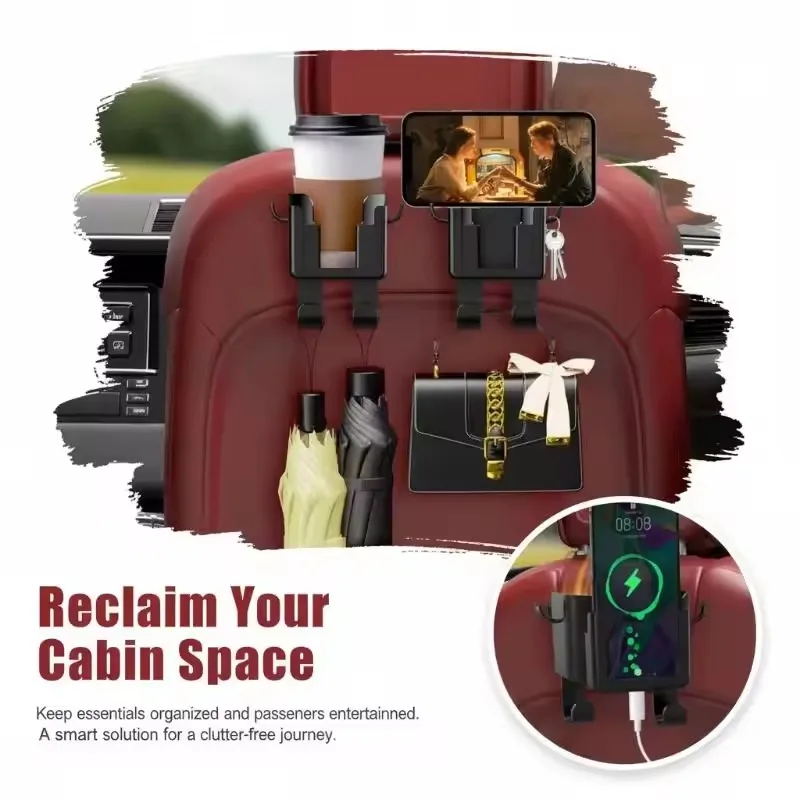 Portabicchieri per Auto 6 in 1 con 4 Ganci, Supporto per Bevande da Appendere al Poggiatesta, Supporto Universale per Bottiglie sul Sedile Posteriore con Supporto per Telefono