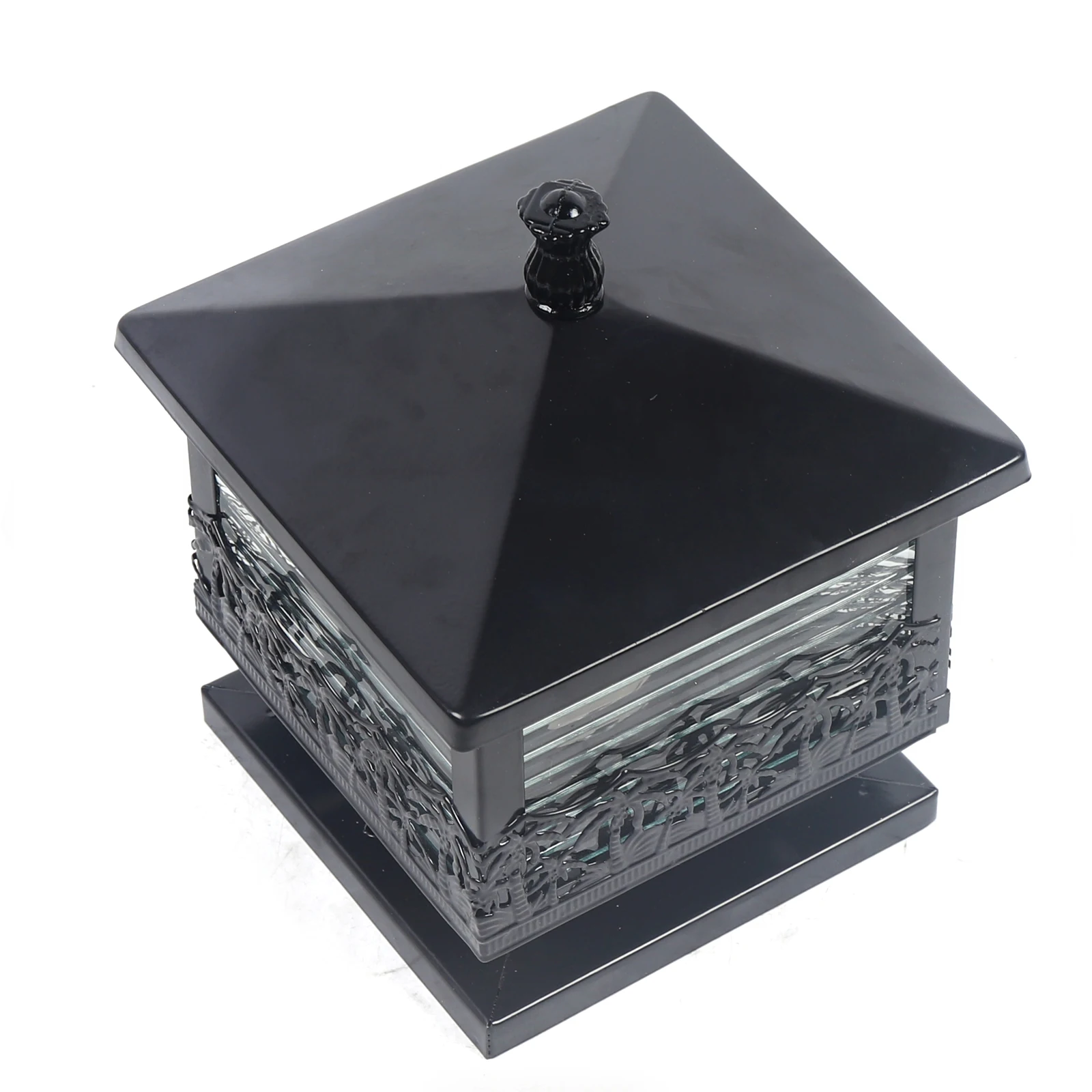 Lampada da palo per cancello da giardino E27 Pilastro in vetro 220V 20 * 20 * 23 cm Lampada da giardino vintage Lanterna piedistallo esterna nera per l'illuminazione
