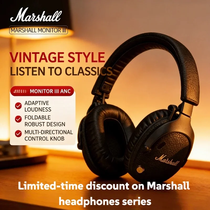 Nuove Cuffie Wireless Marshall Design Vintage con Dettagli in Ottone Pieghevoli Over-Ear Bluetooth 5.0 Suono Signature per Casa e Ufficio