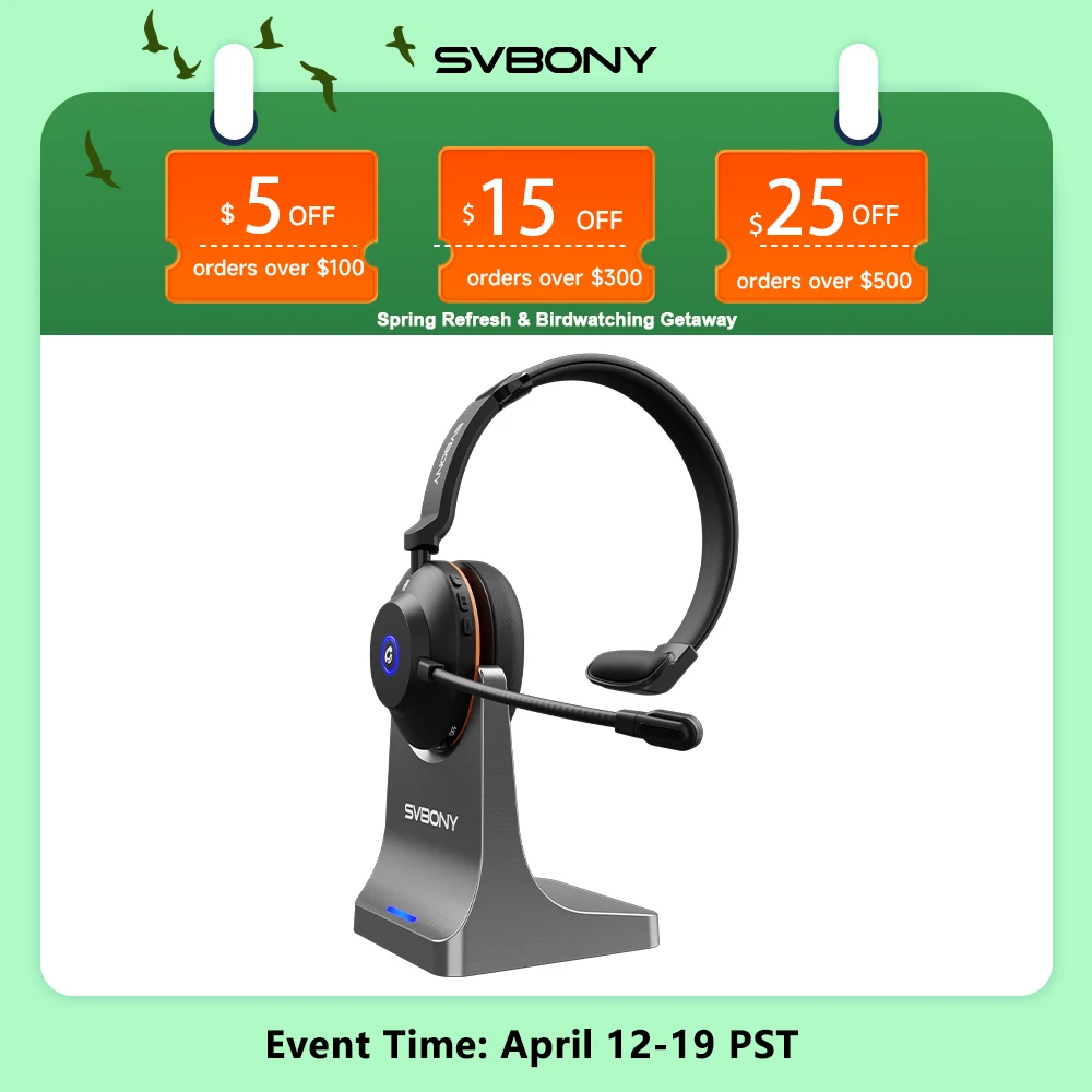 SVBONY SVN H1 Cuffie Wireless Over-Ear con ENC, 500mAh, 42ft, 120g, Plug and Play per Videoconferenze e Call Center