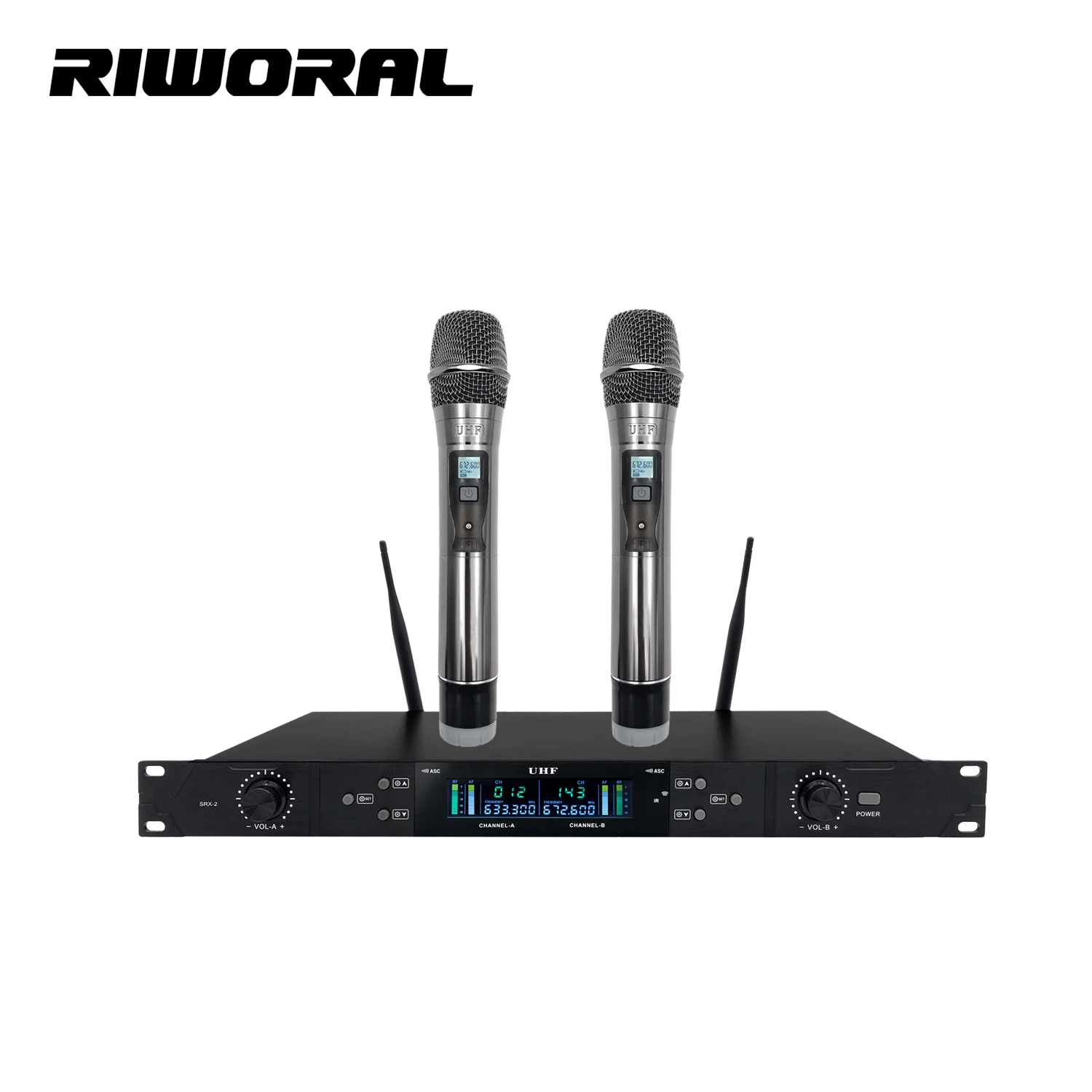 AD4D KSM9 Microfono a condensatore professionale wireless doppio, sistema True Diversity per palcoscenico, 600 MHz, 2 canali, microfono karaoke in metallo ADX2