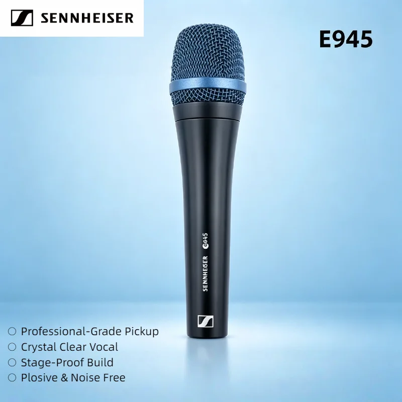 Microfono Vocale Dinamico Professionale Sennheiser E945 Supercardioide Cablato Palmare Kit Bundle per Performance Live sul Palco