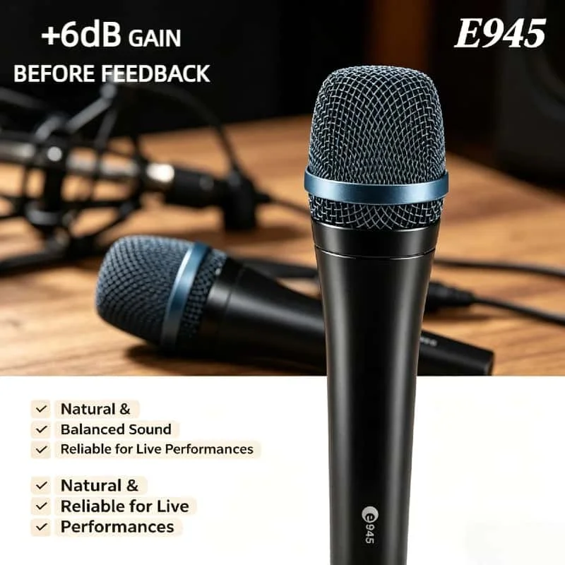 Microfoni Dinamici Supercardioide E945 Dual Pack per Voce dal Vivo, Microfono Cablato Professionale per Cantanti da Palco, Set da 2 Pezzi, Versione 2026
