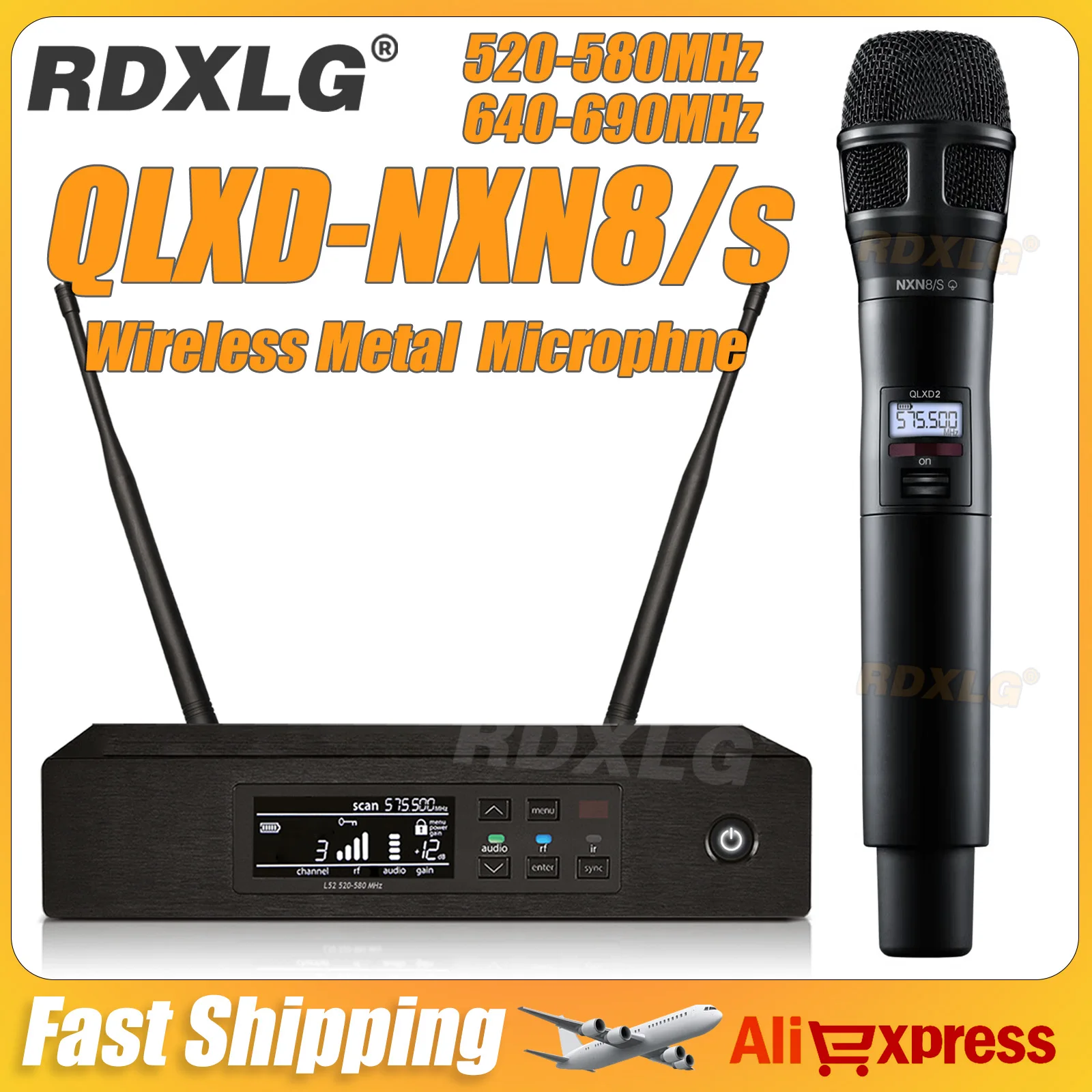 Microfono Wireless Professionale di Alta Qualità per QLXD4/NXN8/s, per Esibizioni sul Palco, 500/600MHz, per Chiesa e Karaoke, Portatile in Metallo