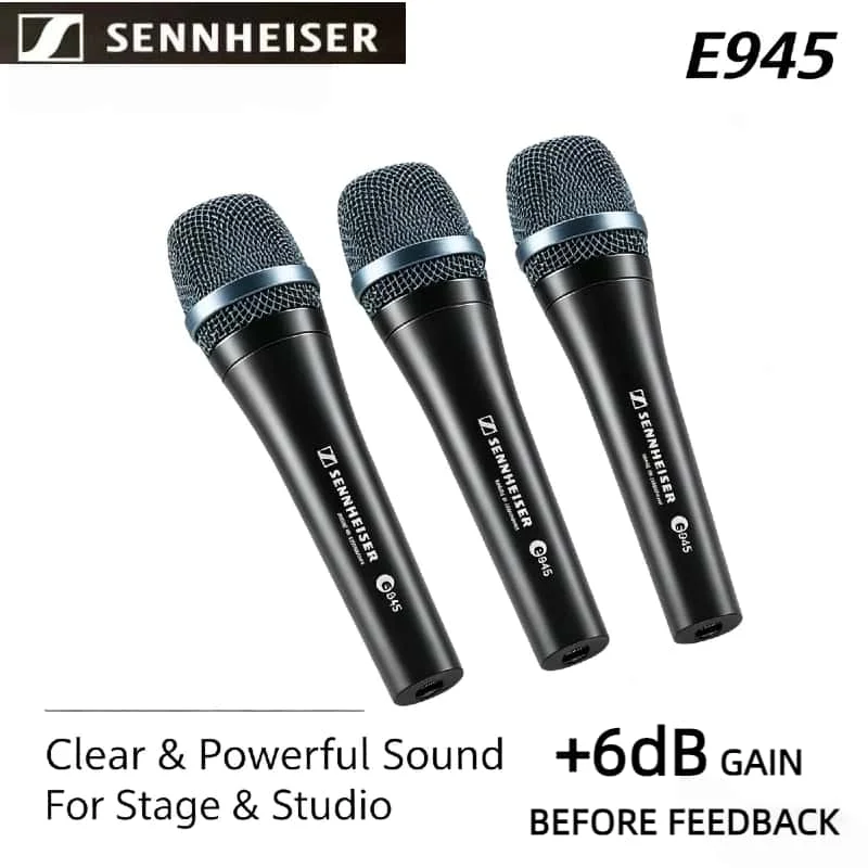 Set Premium di 3 Microfoni Dinamici Sennheiser E945, Supercardioide, per Voce dal Vivo, Microfono Cablato Professionale per Palcoscenico, Originale