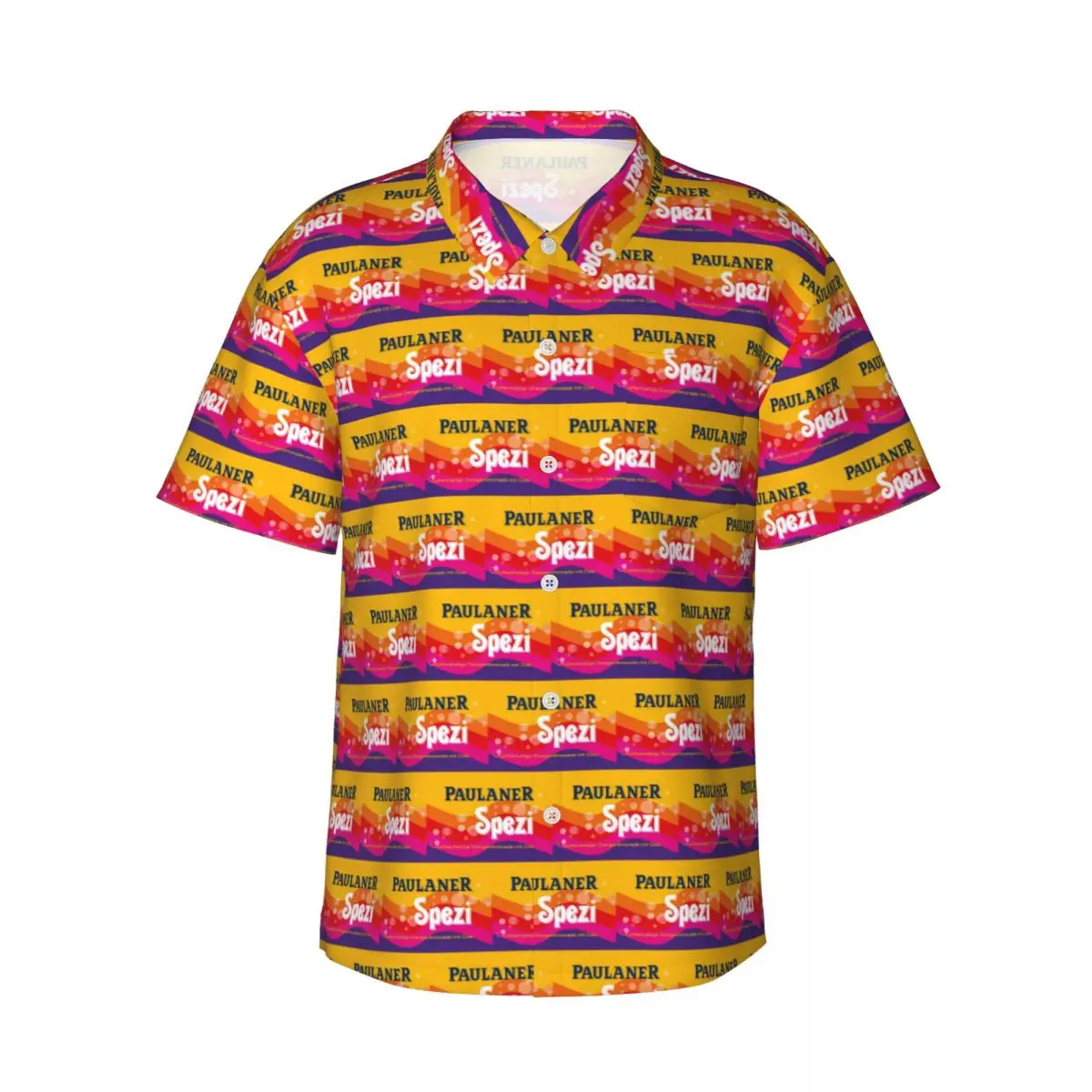 Paulaner Spezi Munich Camicie da uomo Camicia hawaiana a maniche corte Top con bottoni alla moda per la spiaggia estiva