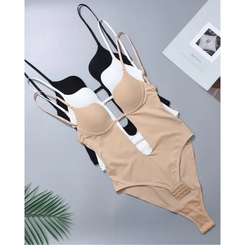 Body senza cuciture con scollo a V profondo, reggiseno invisibile in un unico pezzo per tette piccole, design senza schienale, anti-cedimento e sollevare, no show sotto i vestiti