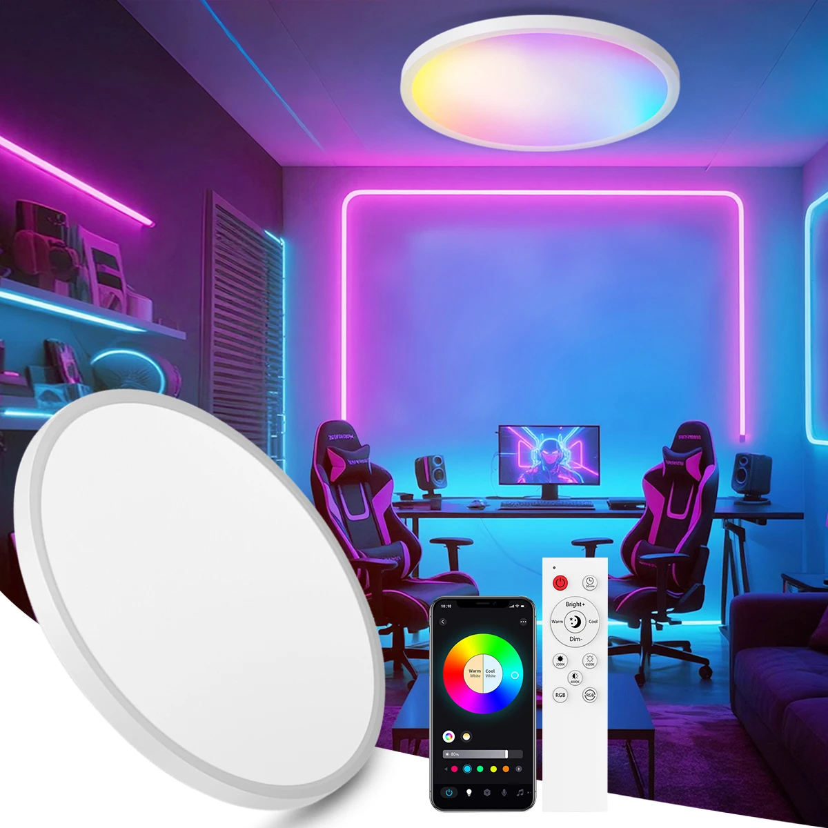Plafoniera Smart WiFi Lampada da soffitto a LED RGB+CCT compatibile con Alexa Google Home 16 milioni multicolore 3000-6500K