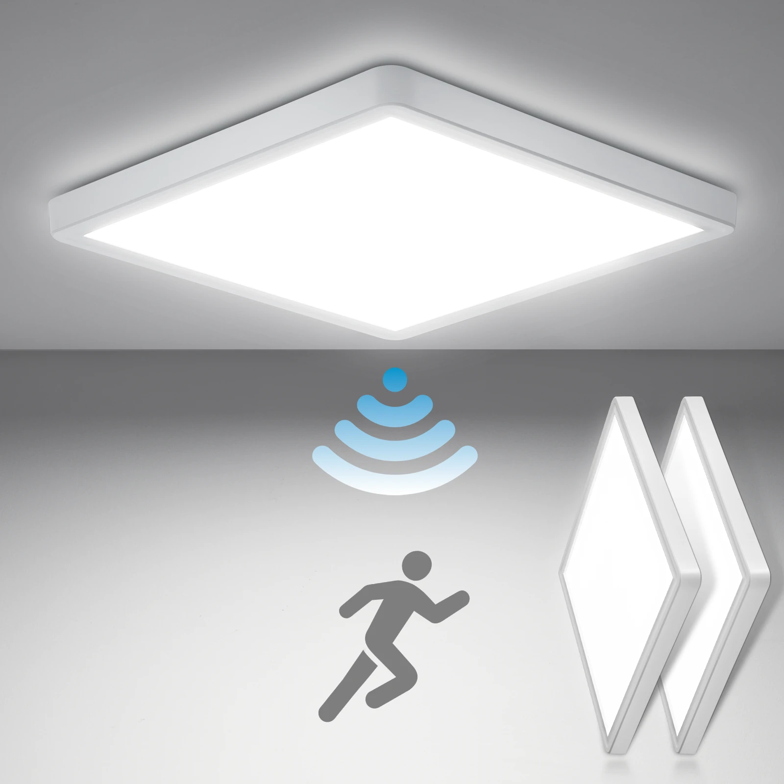 Lampada da soffitto a LED con sensore di movimento radar intelligente da 2 pezzi 18W 4000K, 1800LM IP44 Luce da incasso per scale, seminterrato, ingresso