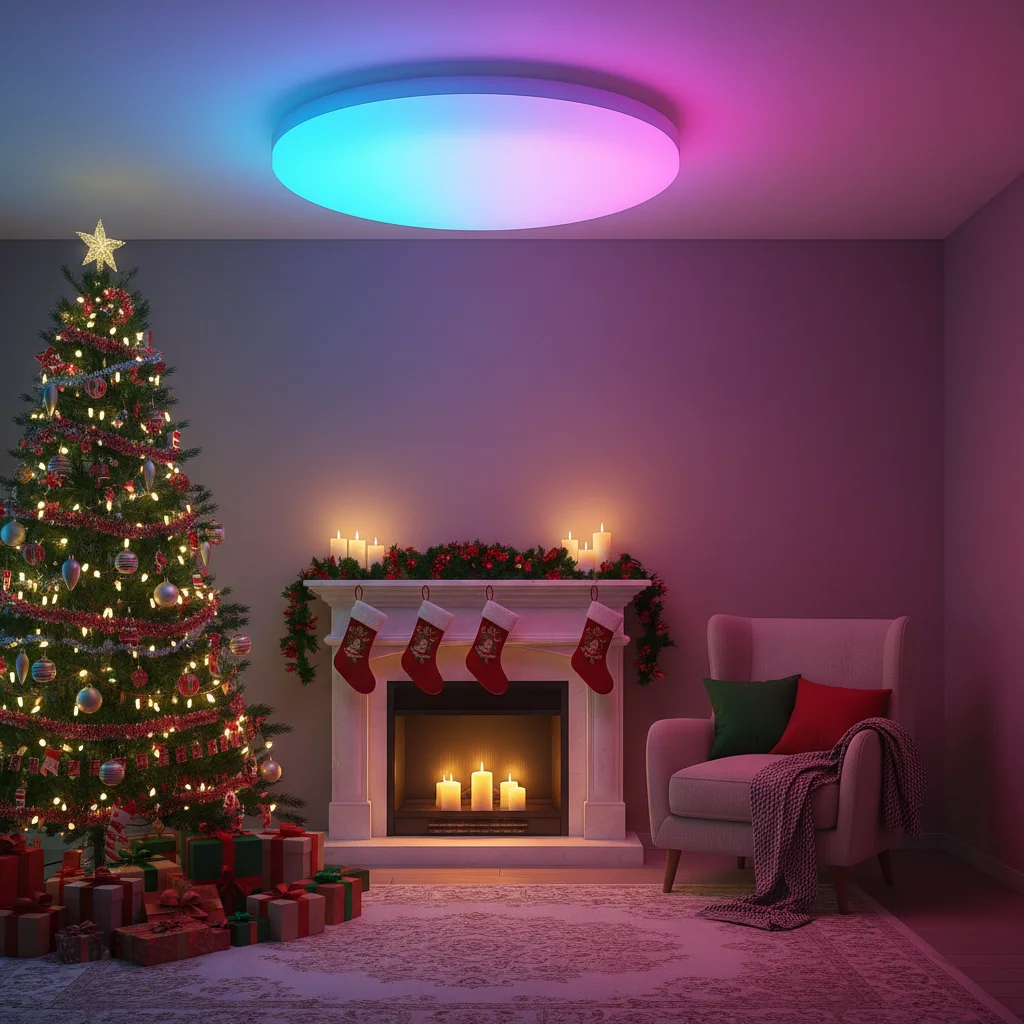 Lampada da soffitto RGB da 18 W con telecomando, luce LED dimmerabile 3000 K–6500 K, luce da incasso ambientale a 7 colori con memoria per camera da letto, feste e decorazioni natalizie