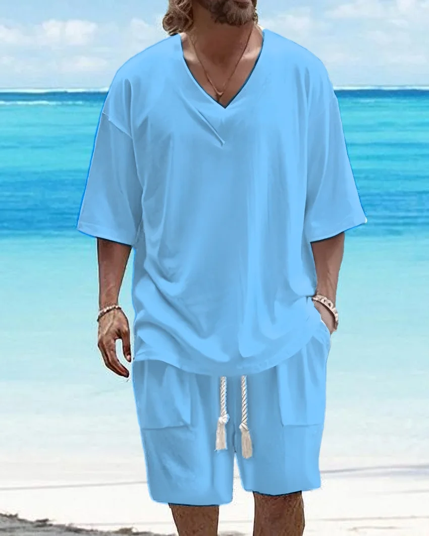 Completo Primaverile ed Estivo da Uomo con Motivi Etnici, Camicia a Maniche Corte e Pantaloncini Stampati per Comfort Casual e Versatilità
