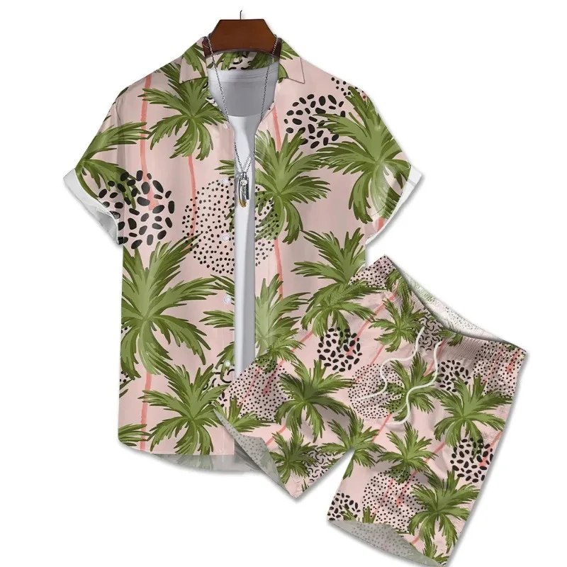 Completi Estivi da Uomo Stile Spiaggia, T-shirt Casual, Camicie e Pantaloncini con Stampa Hawaiana a Cocco