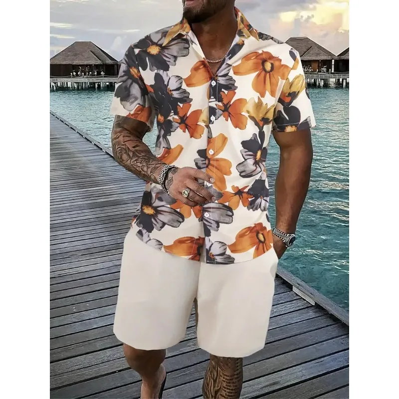 Completi Estivi Streetwear Hawaiani da Uomo: Camicia e Pantaloncini Stampati 3D con Motivi Floreali Retrò, Maniche Corte, Casual, Oversize, da Spiaggia