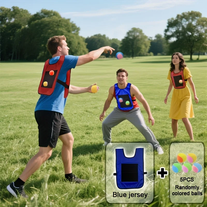 1 set/2 set di giochi con palline appiccicose per famiglie, 2 gilet e 10 palline piccole, adatti per giochi con palline appiccicose, giochi di squadra appiccicosi, giochi di squadra all'aperto, giocattoli da giardino, giochi di sabbia, materiali durevoli