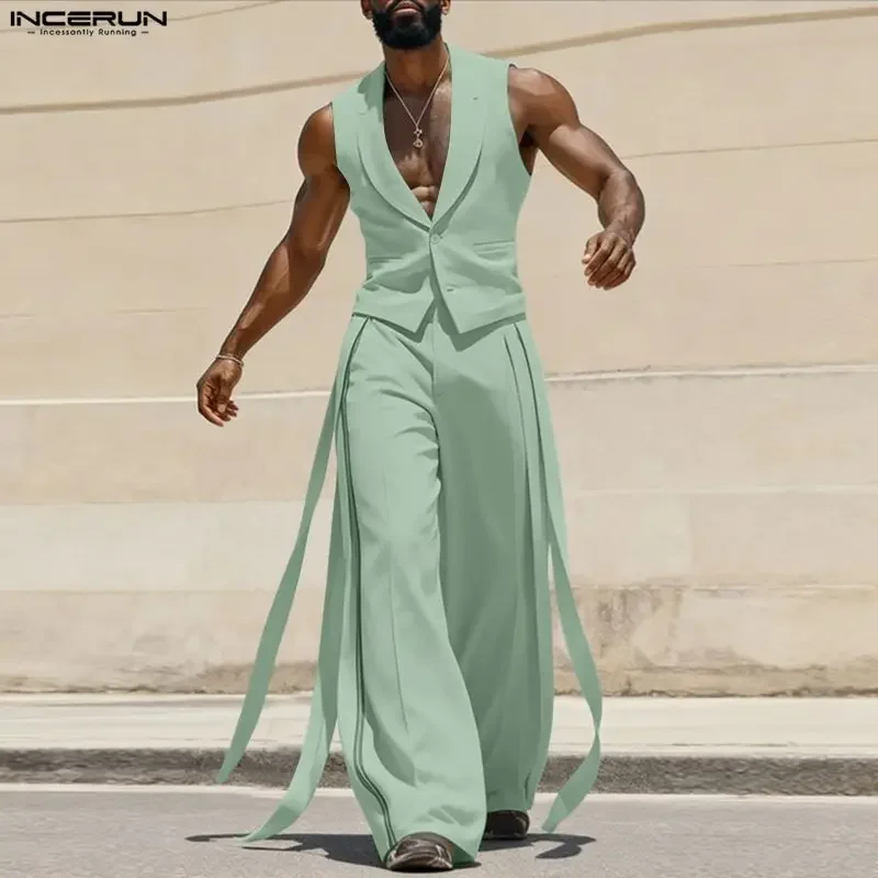 Completo da Uomo INCERUN: Gilet Senza Maniche con Scollo a V e Pantaloni con Cintura, Set Due Pezzi Elegante Streetwear Moda 2026
