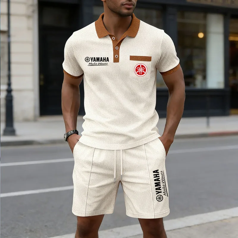 Set Polo e Pantaloncini da Uomo Yamaha Multicolore in Maglia Waffle, Traspirante e Assorbente, per Uso Quotidiano e Streetwear