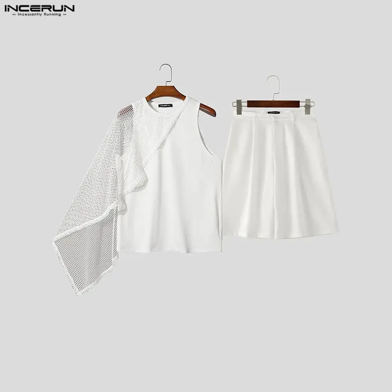 Completi INCERUN da uomo: Top a canotta e pantaloncini in rete trasparente patchwork, set due pezzi streetwear sexy estivo 2026, abiti casual da uomo
