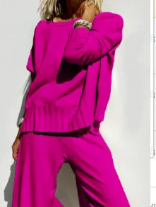 Set in Maglia per Tutti i Giorni, Pantaloni Fluidi Eleganti, Maglione Oversize Super Confortevole, Completo Due Pezzi Sofisticato per Loungewear