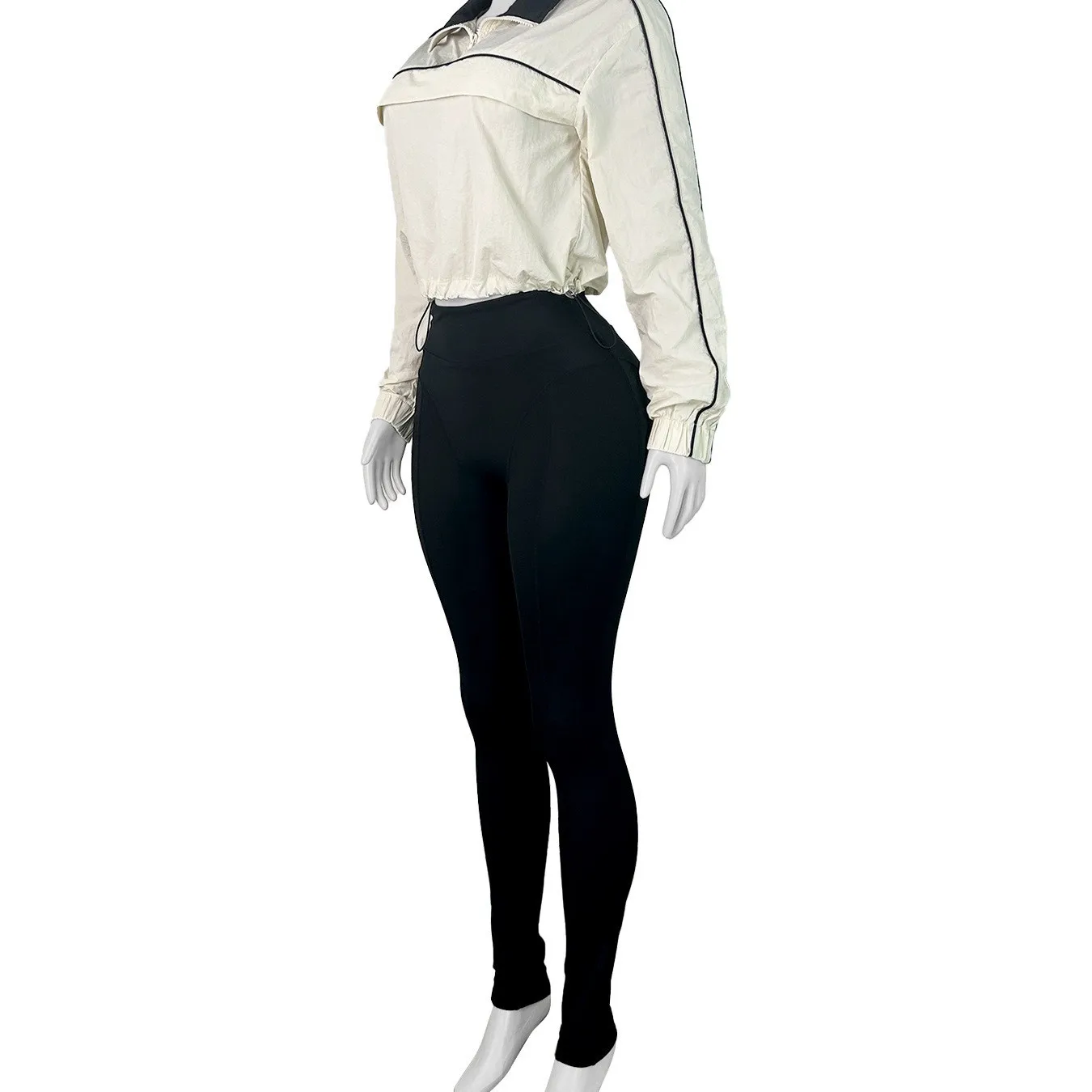 Completo Sportivo Oversize da Donna Primaverile: Top a Maniche Lunghe e Pantaloni Lunghi con Coulisse in Vita, Tuta in Nylon