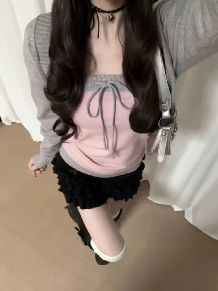 Nuovo Set Casual Coreano Primavera 2026 da Donna: Cardigan Chic + Top Senza Spalline Dolce, Outfit Elegante alla Moda Giapponese