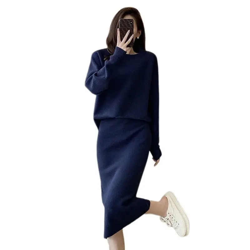 Set in Maglia Casual da Donna con Collo Tondo, Maglione a Maniche Lunghe e Minigonna a Vita Alta, Completo Caldo in Due Pezzi