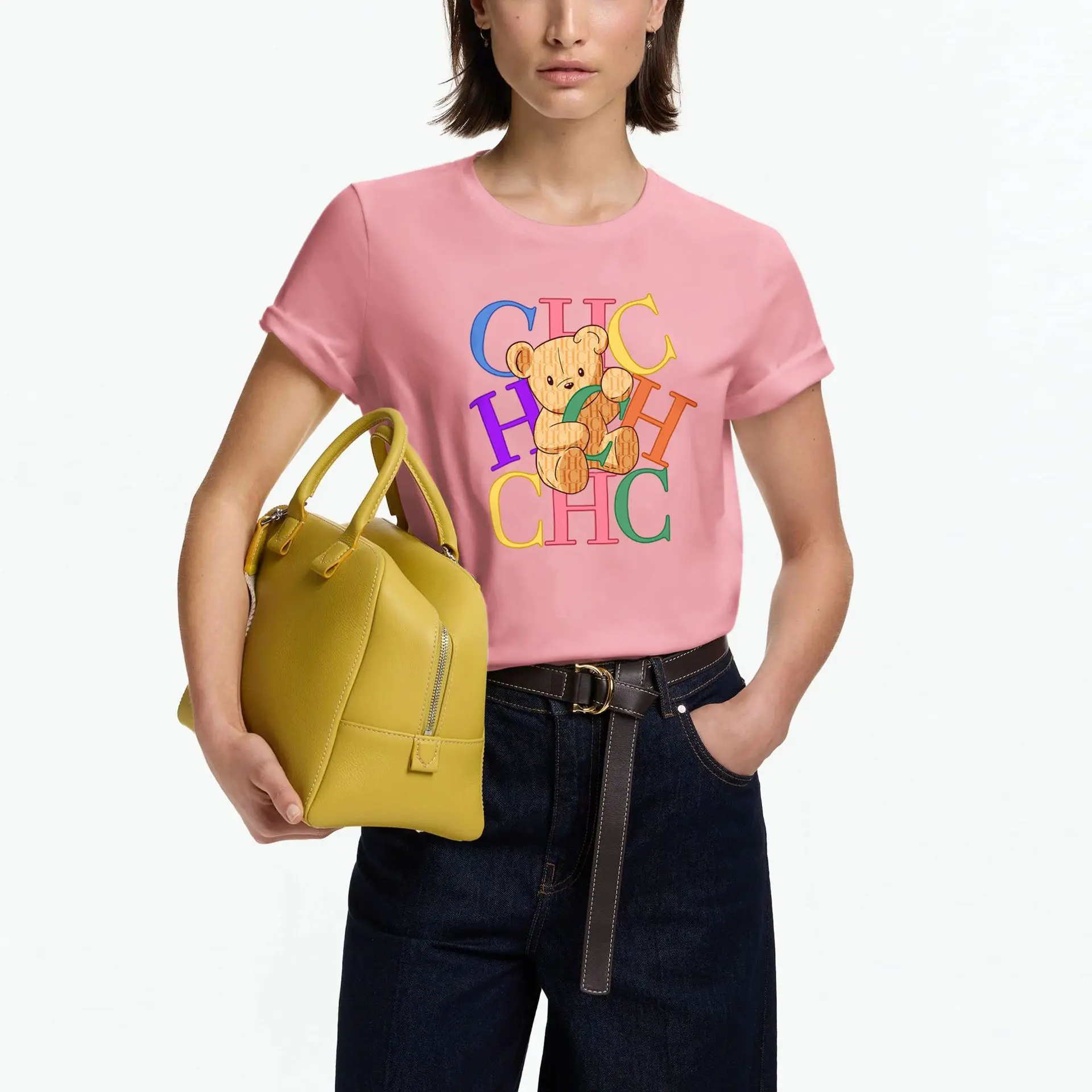 T-shirt Oversize Casual in Cotone Unisex con Stampa Lettering Estiva 2026 CHHC - Maglietta Basic Streetwear per Ogni Giorno