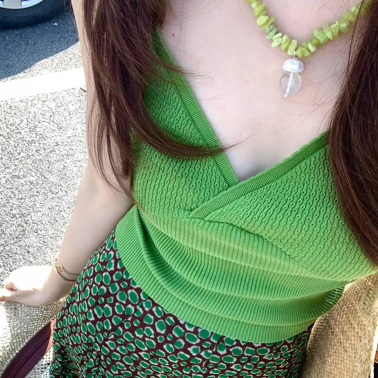 Top a maglia verde tinta unita con scollo a V, sexy e senza maniche, per donna, estivo, stile Y2K, streetwear, top da festa, casual, per attività all'aperto