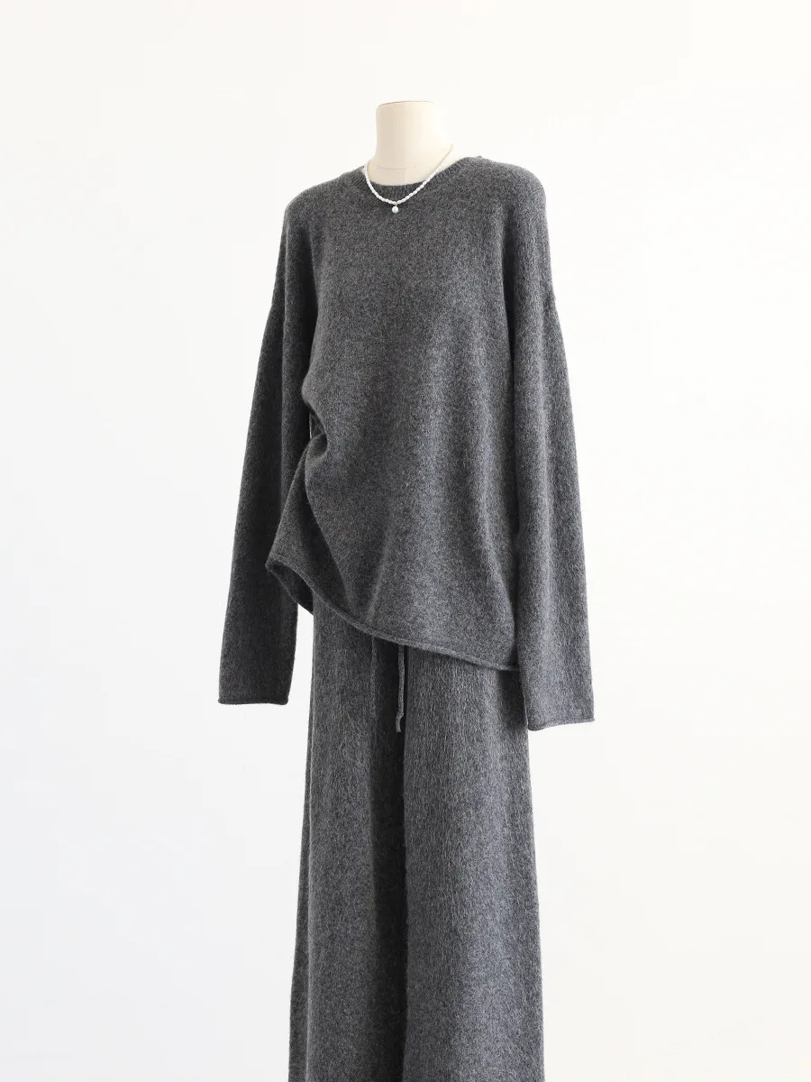 Set Autunnale in Maglia Comoda, Pullover Oversize Due Pezzi, Pantaloni a Vita Alta e Gamba Larga, Maglione Spesso con Collo Tondo