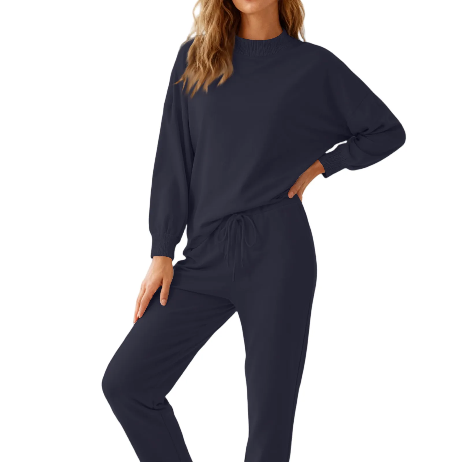 Completo Casual in Denim con Pullover a Collo Alto e Tasche, Set Jeans con Coulisse a Maniche Lunghe, Due Pezzi Rilassati, Outfit Femminile