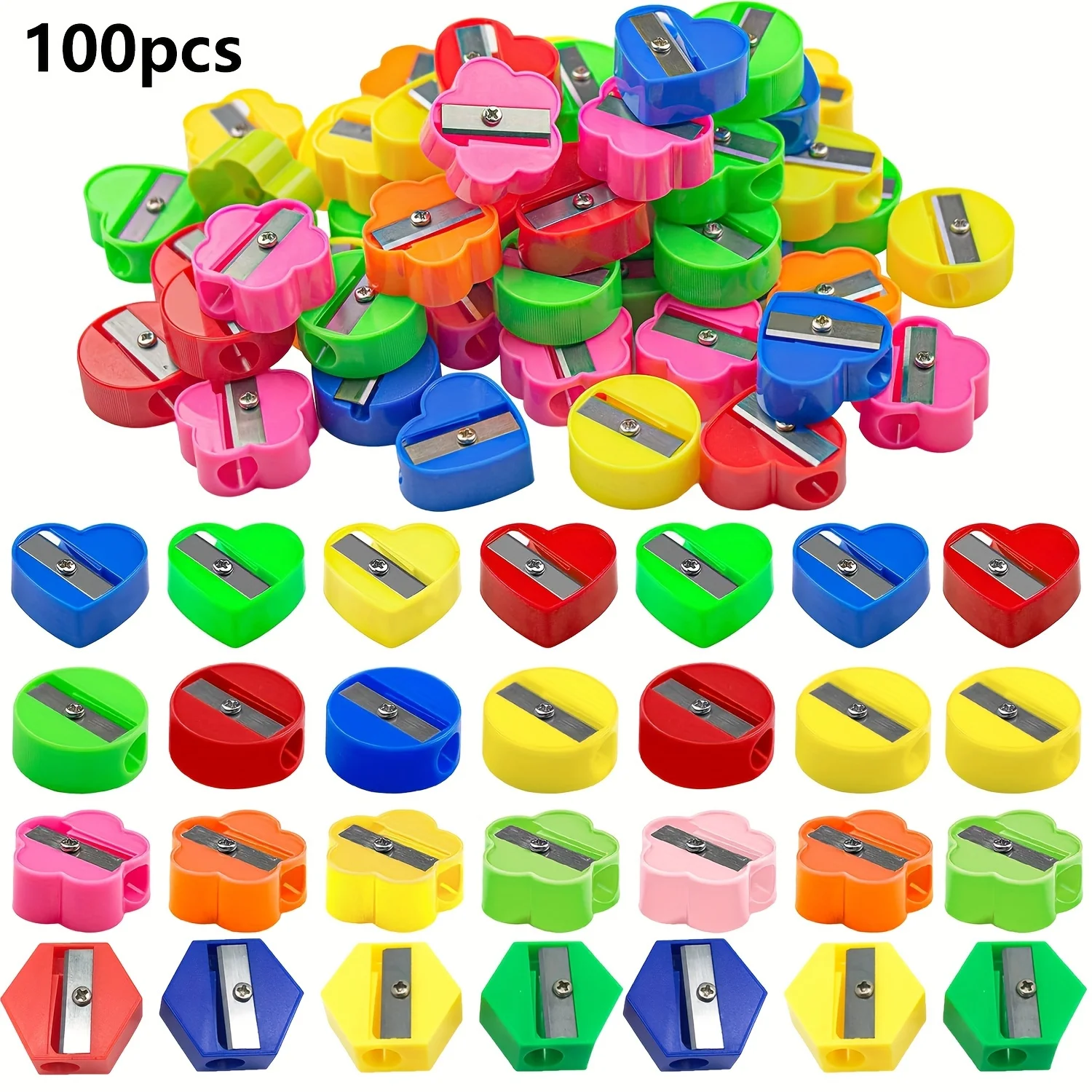 Temperamatite a doppio foro Triangoli di colore casuale Esagoni Cerchi Quadrati Trucioli di matita Forniture per ufficio scolastico