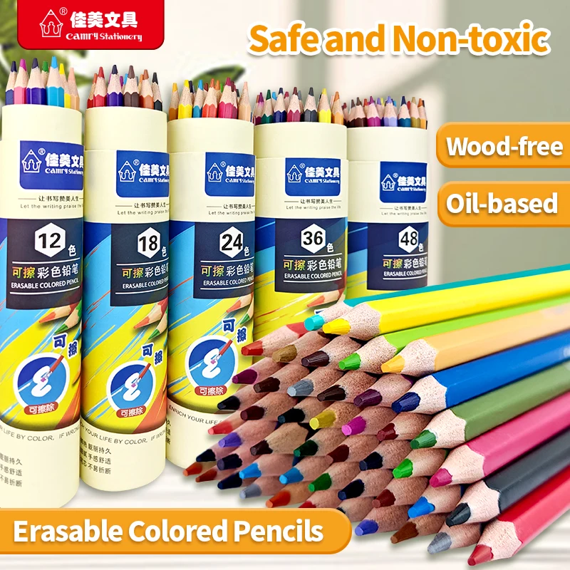 Matite colorate cancellabili 12/18/24/36/48 colori Colorazione liscia Matite d'arte premium per bambini Studenti Disegno di cancelleria scolastica