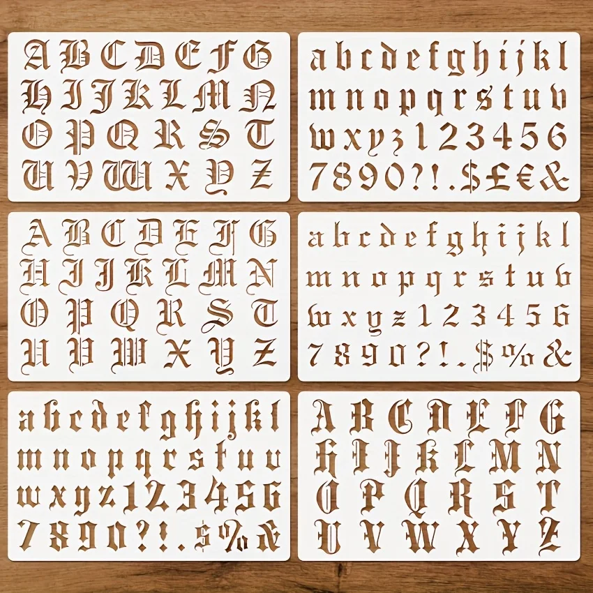 Set di 6 Stencil per Calligrafia Gotica, Alfabeto e Numeri in Stile Old English Riutilizzabili, per Pittura Fai-da-Te, Artigianato, Scrapbooking e Creazione di Biglietti