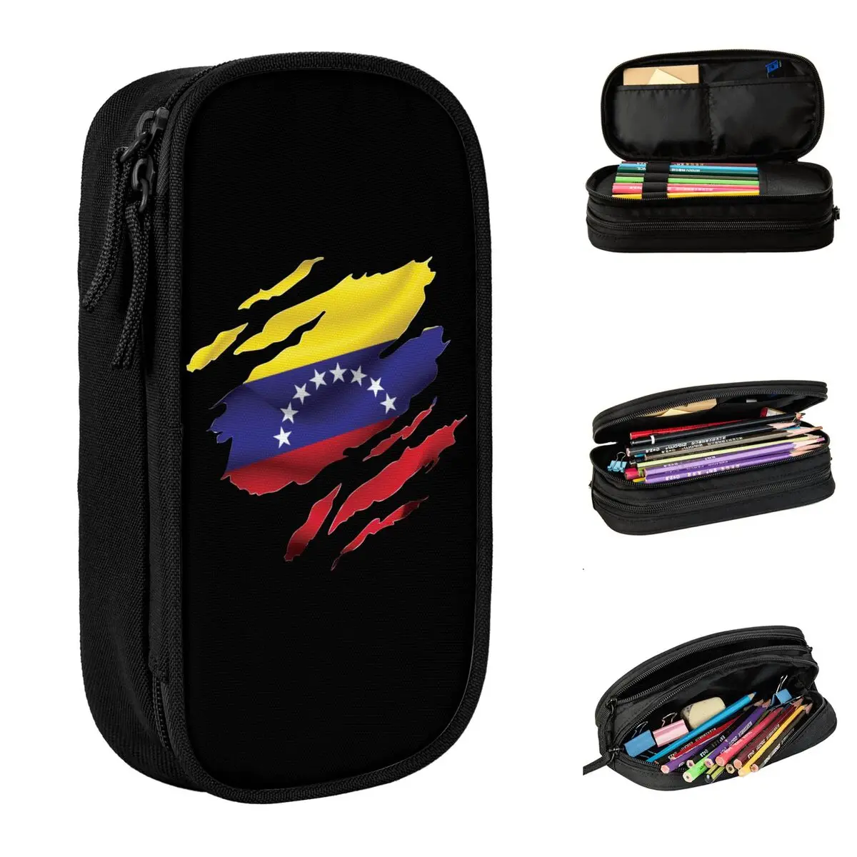 Astucci per matite con bandiera strappata Venezuela Borse portapenne classiche Venezuelan Ragazza Ragazzo Scatola per matite con cerniera per scuola per studenti di grande capacità