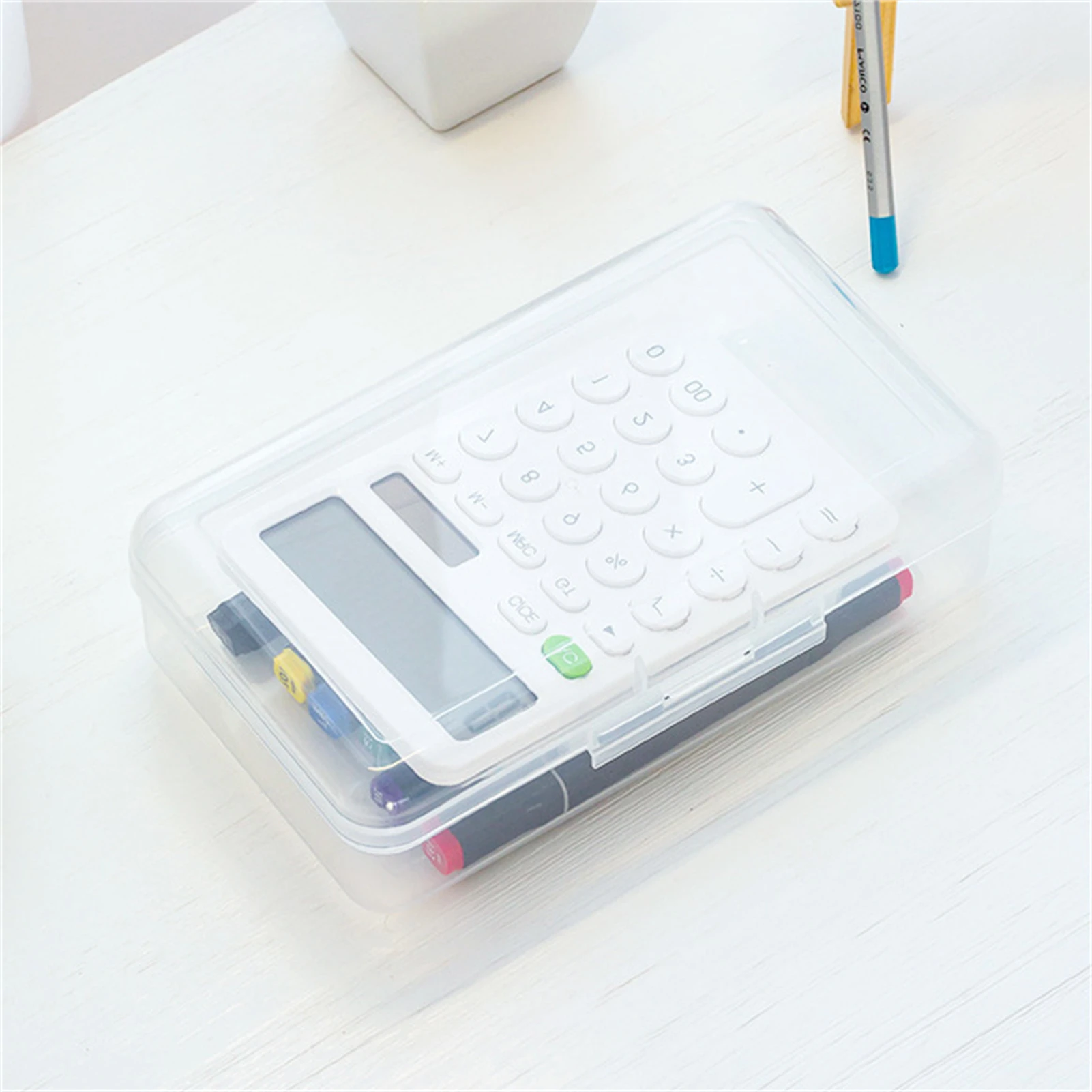 Scatola portapenne trasparente e impilabile, custodia per ufficio scolastico di grande capacità