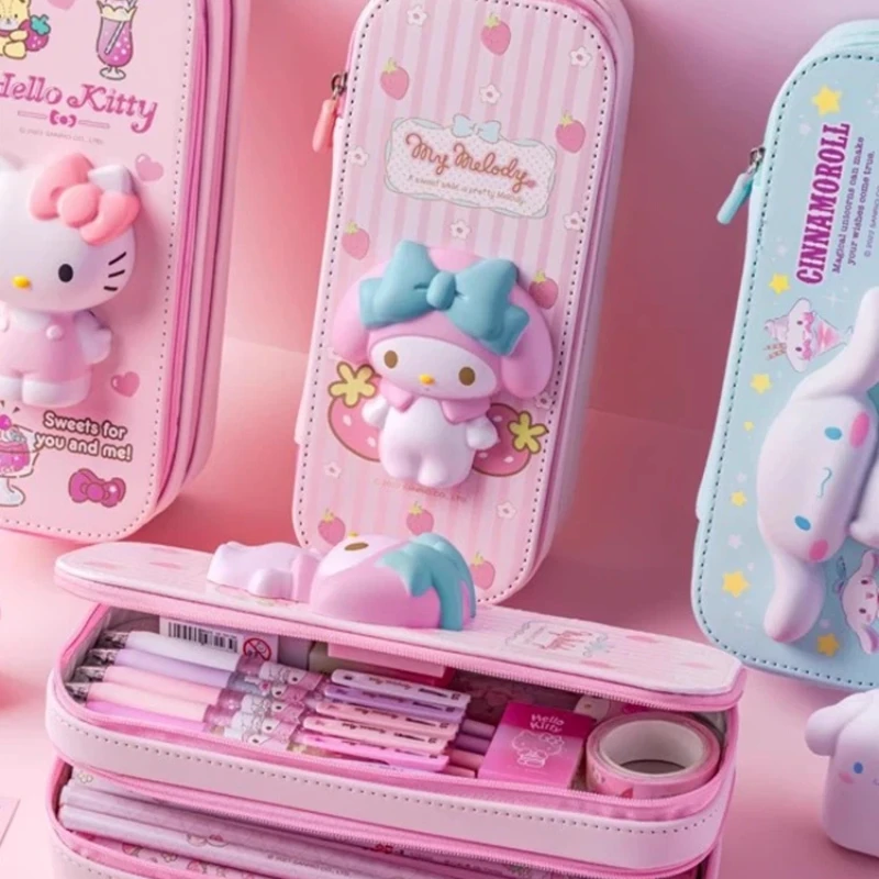 IiGEN Astuccio per matite a doppia decompressione Astuccio per matite di grande capacità per cani con orecchio grande Astuccio per matite simpatico cartone animato My Melody Pink Girl.