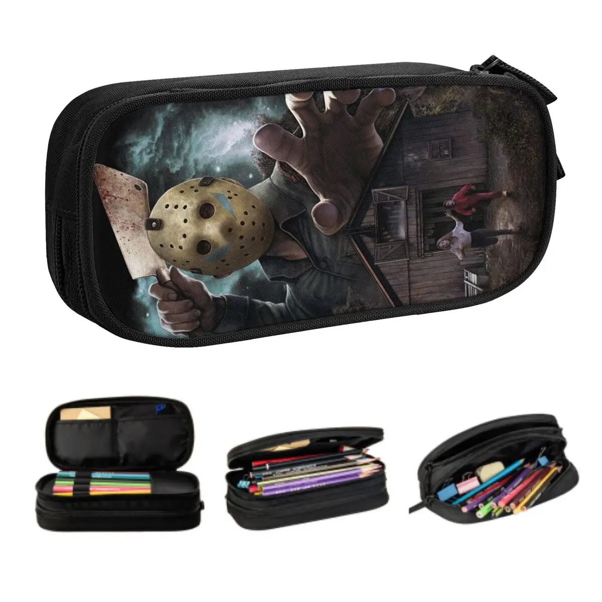 Astuccio personalizzato per film horror di Halloween per ragazzi e ragazze, astuccio per penne di grande capacità, materiale scolastico
