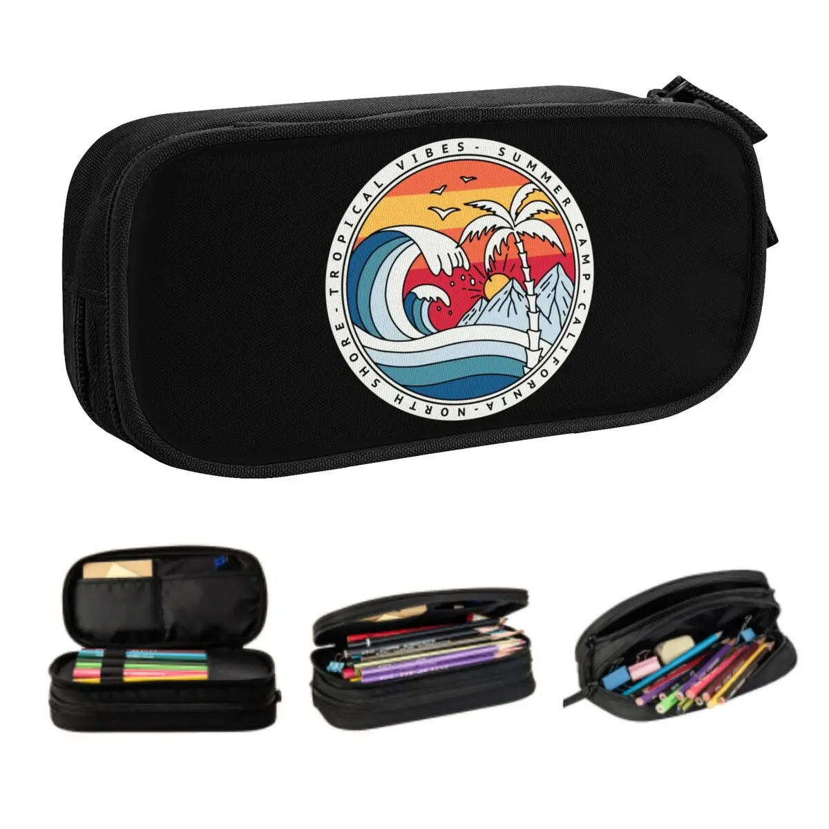 Astuccio coreano personalizzato California Beach Surfing Girl Boy Borsa per matite estiva da surfista di grande capacità Astuccio per studenti di cancelleria