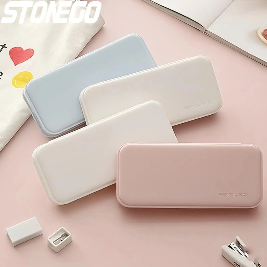 Astuccio semplice Kawaii Morandi per studenti Astuccio per matite a doppio strato di grande capacità Organizzatore di cancelleria per cartoni animati Materiale scolastico