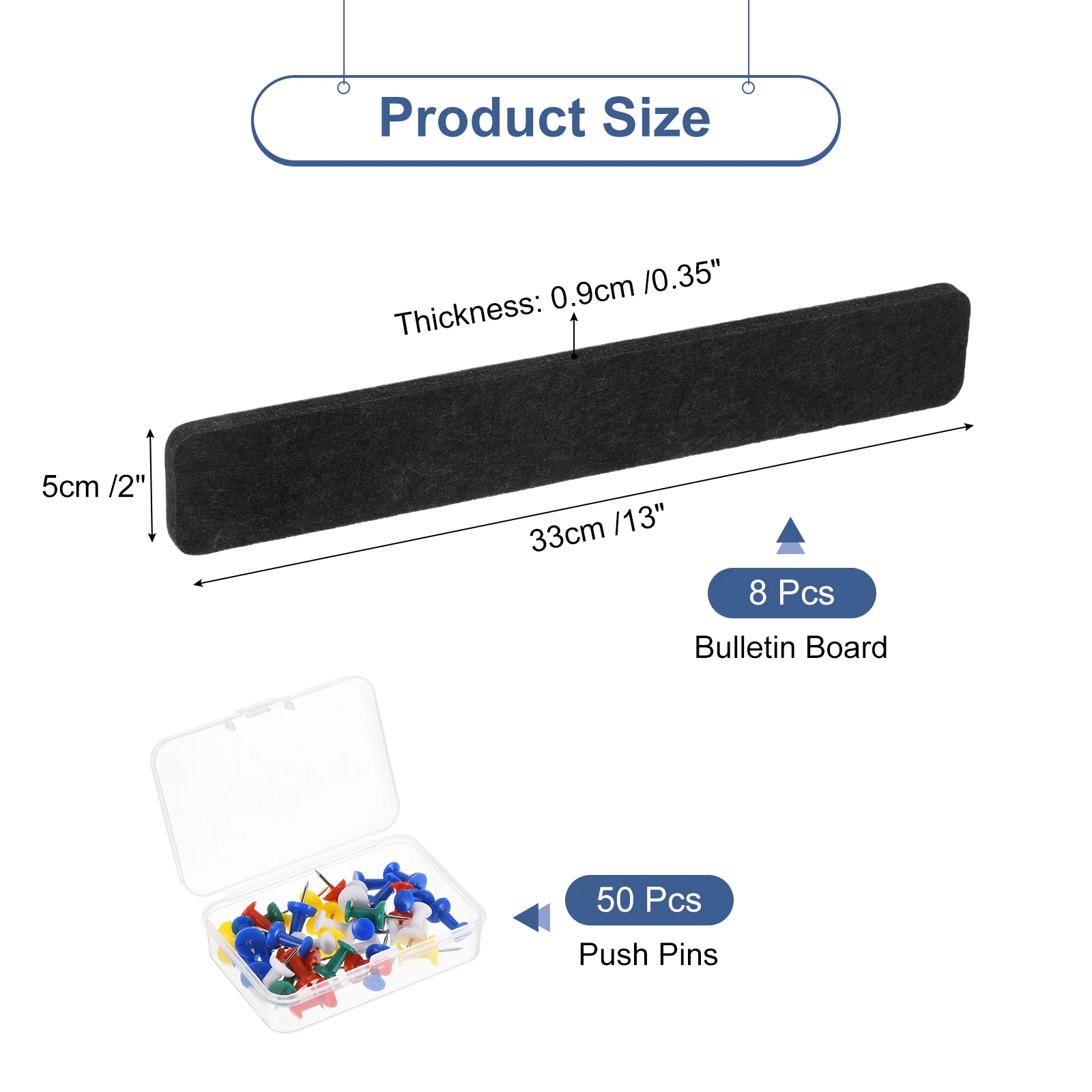 8 Pezzi Strisce Adesive in Feltro per Bacheca, Barre Adesive per Pannello in Sughero con Puntine per Foto e Promemoria