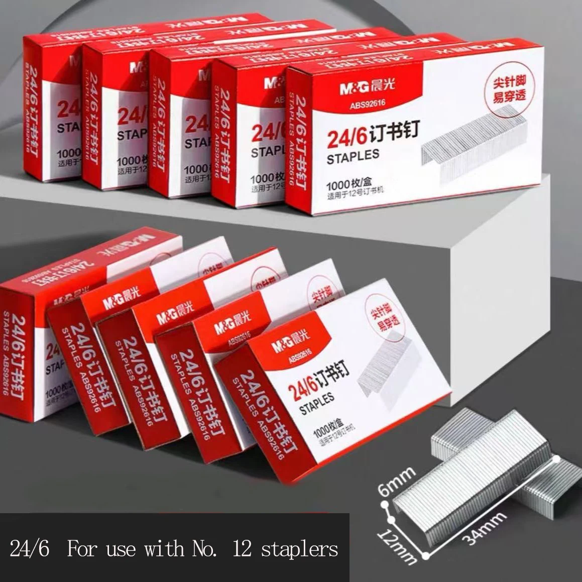 Graffette M&G, lunghezza standard da 1/4 di pollice, 24/6, design con punta a scalpello senza inceppamenti, 1 scatola da 1000 graffette per cucitrici standard