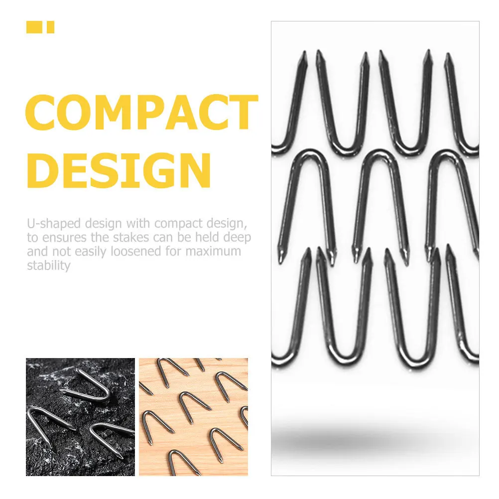 50 Pezzi Picchetti a U in Metallo per Recinzioni da Giardino, Chiodi Resistenti alla Ruggine, Accessori di Fissaggio per Stabilità di Recinzioni Esterne, Decorazioni Antivento per Cortile