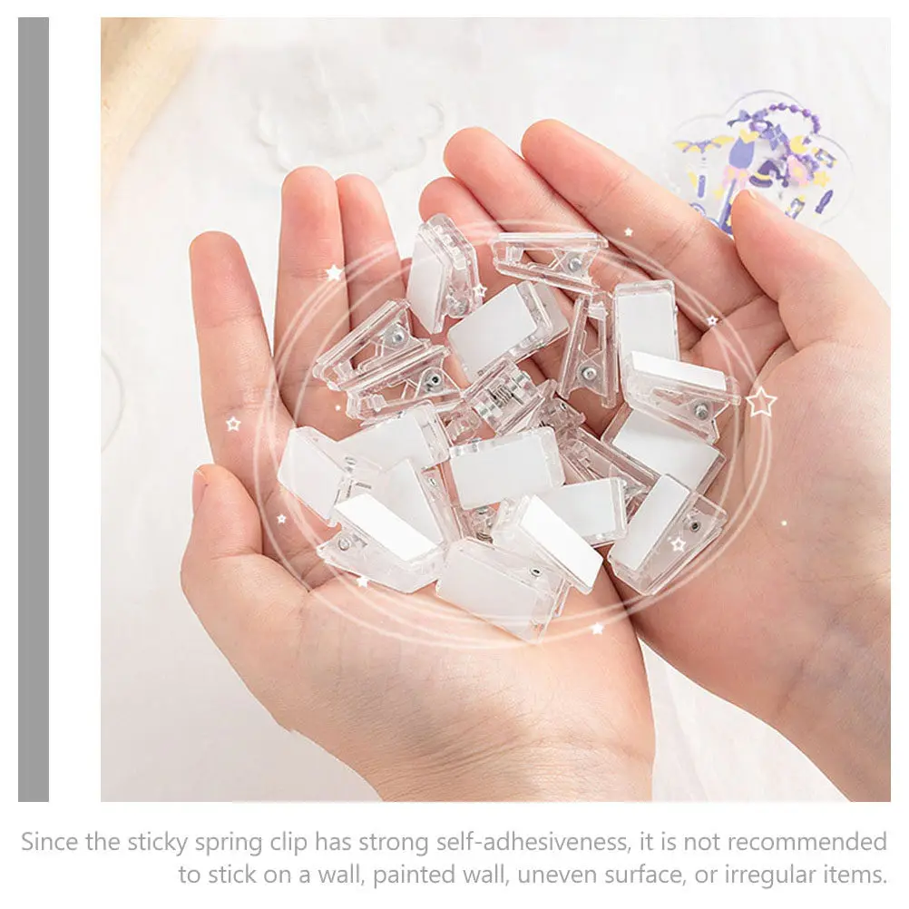 20 Pezzi Clip a Molla Trasparenti Piccole, Clip Adesive in Plastica Trasparente per Parete, Porta Foto, Badge, Carte d'Identità, Targhette con Nome
