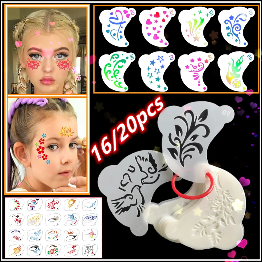 16-20 pezzi modelli di pittura per il viso stencil riutilizzabili, modelli di tatuaggi per pittura artistica, stencil da disegno fai da te, per bambini decorazione per adulti