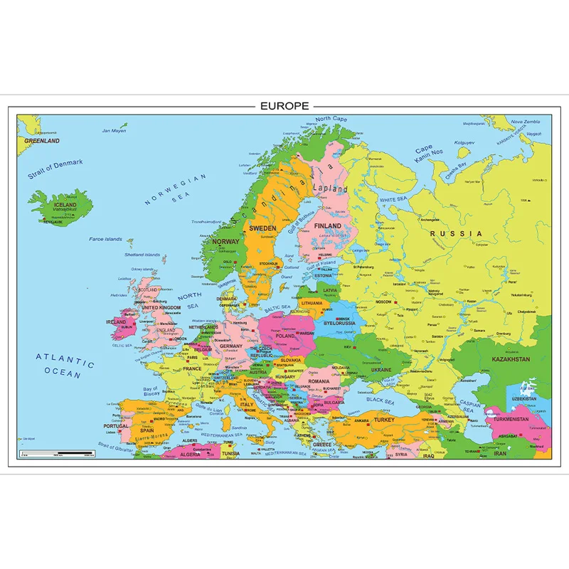 Poster Vintage della Mappa d'Europa in Varie Dimensioni con Dettagli, Decorazione Murale per Aule Scolastiche, Strumenti Educativi di Geografia