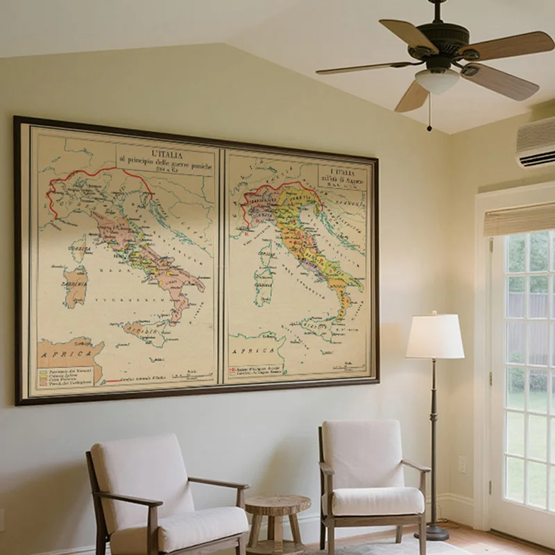 Mappa d'Italia non incorniciata - Mappa vintage dell'Italia, decorazione da parete, decorazione per la casa, studio, strumenti geografici, strumento per turismo/educazione